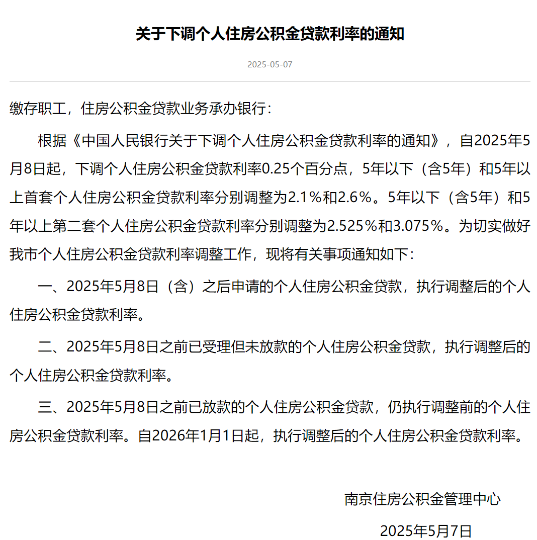 2026年1月1日起,南京部分人群的公积金贷款利率要降了!