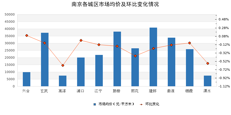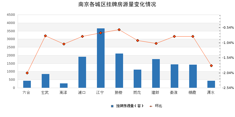 三、六合环比涨幅居首,江宁挂牌房源量领先