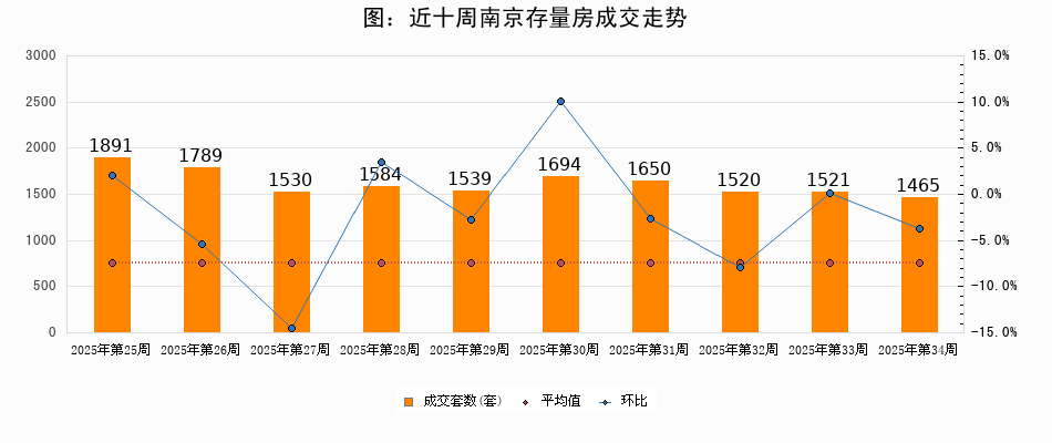 南京第34周( 08月18日-08月24日)二手房成交1465套,环比下降3.7%