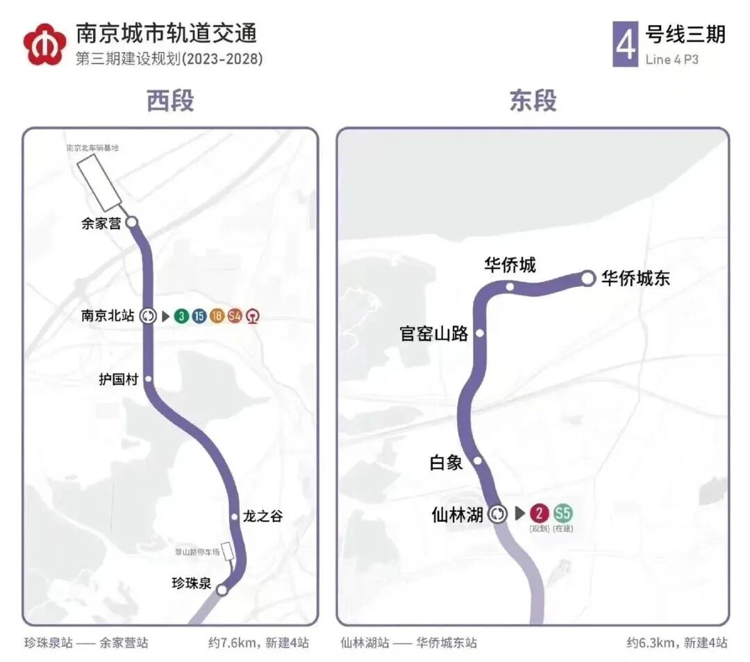 地铁4号线三期工程已启动前期研究工作,该线路分为东西两段,建成后将衔接南京北站综合交通枢纽。